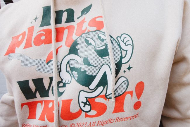 Dentro del catálogo de ropa, se pueden encontrar desde poleras y calcetines hasta tote bags con lemas como “In Plants We Trust” y “Why Not”, plasmados en diseños ultra originales realizados con tela nacional.