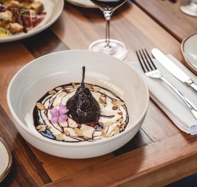 Postre- Peras al carménère acompañado con Rosé VIK La Piu Belle.
